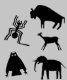 Wildlife Cave Rock Art - Prehistoric Animals. Ancient Alien Geoglyph Ancient Art. Nazca Lines , Peru and petroglyphs and cave drawings. Prehistoric Animal Symbols Nazca Lines mysterious geoglyphs in Peru and tribal artists art. Ancient tribal art animal geoglyphs tshirt earth symbols. Customize your abstract art ancient tribal tshirt style and colors. Ancient animal man or alien earth abstract ancient animals include buffalo, owl, spider deer and elephant.