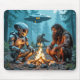 Caveman and Alien Robot By a Campfire Mouse Pad