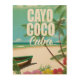 Cayo Coco Cuba retro vacation travel poster, Sandy Cuban beach holiday poster to Cayo Coco.