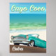 Cayo Coco cuban vintage travel poster of a retro classic automobile.