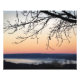 This photo print features fine art photography of the view from a hill south of Cayuga Lake, the longest of central New York's glacial Finger Lakes. The city of Ithaca is located at the southern end. It is the perfect place to view this breathtaking sunset. The sky glows with brilliant colors of orange, pink, yellow, cream, blue and violet. Silhouetted hills line the eastern shore. A low lying branch dominates the foreground and frames this lovely scene.