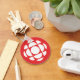 Created by Swiss-Canadian design firm Gottschalk + Ash, in a further revision of Burton Kramer's 'gem'. The red colour represents Canada in a symbolic way, the radiating form respects the DNA of the CBC brand and will not get lost in translation. Canadians would still recognize this as the CBC logo and the improved structure — fewer visual parts and colour — fits across multiple screens, legible on a mobile phone, laptop or in print and is visually less cluttered. Used from 1992 - present.
