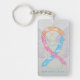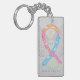 Awareness ribbon angel keychain features the art of a pink, yellow, and blue with clouds awareness angel painting. The art side notes "CDH Awareness" and the reverse side states "I Hope & Support Awareness for a CDH Cure!" Add your own custom words for personalized angel art cause awareness custom charm key chains! You can also remove the text for an art only angel pendant key chain. The pink, yellow and blue with clouds awareness angel ribbon painting art keychains can be customized with personalized messages to make great awareness cause art key chains for fundraisers, awareness gifts, or other special events. Give this angel art keychain charm as an awareness ribbon gift for any occasion.
