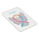 The guardian angel magnet features the painting of a yellow, baby blue, and soft pink awareness ribbon with clouds. This awarensss ribbon has the meaning of supporting Congenital Diaphragmatic Hernia CCDH) Awareness. The awareness angel ribbon art can be customized with personalized messages to make great cause magnets for fundraisers, awareness gifts, or other special events or occasions.
