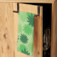 Bright green kitchen towel with a pattern of cecropia leaves. These leaves have a nice shape and are one of the favorite foods for a sloth.