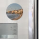 Round photo magnet with the typical architecture of the old houses built on the beach of the Mediterranean Sea in the town of Cefalu, on the Island of Sicily in Italy.