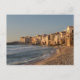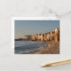 Postcard of the typical architecture of the old houses built on the beach of the Mediterranean Sea in the town of Cefalu, on the Island of Sicily in Italy.