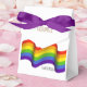 This PRIDE THEMED Favor Box features the LGBTQ flag. On the front and back panel the text reads "Celebrate!". There's an area for custom text, on the front flap. The tent sale has four ribbon color choices (purple shown here.)