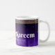 Purple and white Ramadan Mubarak coffee mug featuring mosque, Arabic pattern and "Ramadan Kareem, Happy Holy Month" written on purple background. Ideal gift for your loved ones.
