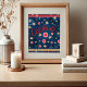 Celebrate Stars Flowers Fun Blue Stripe Poster