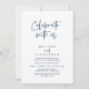 Elegantly announce your happily ever after with our modern navy blue themed wedding elopement celebration invitation card, "Celebrate with us". Tailored for couples continuing their love story, this invitation strikes a perfect balance of sophistication and charm, setting the scene for an unforgettable event. Featuring a modern contemporary script design, it adds a touch of timeless grace to your special day. Designed by the talented TeeshaDerrick, this invitation is a stylish expression of your enduring love.