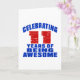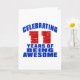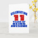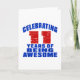 The "11" stands out in bright red, and the text is sure to make the child smile. The bright red number stands out from the blue letters. The personalization in black lettering is easy to see.