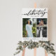 Celebrating the life of memorial service sign or funeral sign in white with black text. Add three photos of your loved one, and their name and years living in elegant fonts.