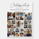 Create a memorial remembrance tribute photo display for a Celebration of Life event or funeral memorial service utilizing this easy-to-upload photo collage template with 21 square pictures with the title CELEBRATING THE LIFE OF NAME for your loved one. The design features elegant script swash typography in your choice of colors, shown in black and white. OPTIONS: The sample is shown in a 22x30" size; other sizes are available (choose Custom Size for even borders by changing the height and width proportionately AFTER clicking the UNLOCK icon that looks like a chain link). You can also transfer the design to a poster, banner, tapestry backdrop or other products or have the designer convert it to a DIGITAL DOWNLOAD file for local printing. ASSISTANCE: For help with design modification, resizing, transferring the design or if you would like coordinating items, contact the designer BEFORE ORDERING via the Zazzle Chat MESSAGE tab or email makeitaboutyoustore@gmail.com.