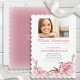 The design features a photo on top with a delicate arrangement of soft, watercolor pink Carnation floral on the bottom in soothing tones, evoking a sense of peace and remembrance. Pink carnations hold deep symbolism, making them a poignant and meaningful choice for a funeral invitation. They represent remembrance, gratitude, and enduring love, qualities that align beautifully with honoring the memory of a loved one.