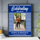 Celebrating the life Photo Blue Stripes Funeral Poster