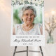 Elegant white rose floral funeral welcome sign features a large photo of your loved one. Three lines of text below let you customize it to create a welcome to your specific memorial ceremony. I chose celebrating the life of, the loved one's name and life dates. This can be easily changed.