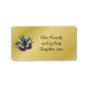 2”l x 3.75”w gold address label to match our "Celebration Extraordinaire" invitation with an image of a purple, green and gold feathered Mardi Gras mask with green sequins around the eyes. See matching invitation, envelope, favor tag and sticker. See the entire Mardi Gras Label collection in the INVITES | Stickers & Labels section.