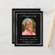 A black colored background, a faux silver looking frame. Personalize and add a photo, name, dates and your text. White text.