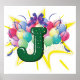 brighten up any room with this festive letter j monogram poster featuring a vibrant green initial surrounded by a cheerful cluster of colorful balloons and confetti. this high quality print is perfect for decorating a child’s bedroom, nursery, or adding a celebratory touch to a birthday party backdrop. the high energy design and playful ribbons make it a standout piece of wall art for anyone looking to personalize their space with a fun and whimsical alphabet theme.