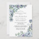 Elegant dusty blue flowers create a beautiful floral frame for your funeral invitation. The deceased person's name is written in a traditional script text. All of the text can be easily edited to create a personal remembrance.