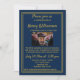 A beautiful elegant custom Celebration of life invitation featuring a dark blue/ navy background with gold colored border and text. A lovely way to invite your friends and family to share their favorite stories and memories of your loved one at the funeral or memorial service. Customize by adding a photograph. Then personalize with your own message and details.