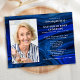 Modern Blue Marble Memorial Funeral / Celebration Of Life Invitation. These sympathy funeral invitations feature a photo on a modern lapis blue agate marble design. Personalize this celebration of life funeral invitation with your loved ones photos, name & dates, event details. This celebration of life invitation is perfect for memorial services and funeral invitations. COPYRIGHT © 2021 Judy Burrows, Black Dog Art - All Rights Reserved. Celebration Of Life Blue Marble Memorial Funeral Invitation Postcard