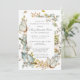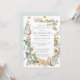 Elegant celebration of a life invitation features an elegant frame of dusty blue botanical foliage, white flowers and butterflies. The deceased person's name is written in a traditional script text. All of the text can be easily edited to create a personal remembrance.