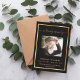 A black background, a faux gold frame . Personalize and add a photo, name, dates and your text.