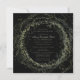 Elegant celebration of a life square invitation features a botanical frame of delicate green leaves. The deceased person's name is written in a traditional script text. All of the text can be easily edited to create a personal remembrance.