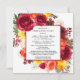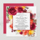 Elegant celebration of a life square invitation features a botanical frame of fall flowers and deep green leaves. The deceased person's name is written in a traditional script text. All of the text can be easily edited to create a personal remembrance.