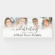 Celebrate the life of your loved one and welcome family and friends to a Celebration of Life event or funeral memorial service with this easy-to-create photo remembrance tribute banner sign featuring 4 pictures and an elegant handwritten calligraphy script title CELEBRATING THE LIFE OF NAME and dates. The text font styles, size, color and placement are fully editable. ASSISTANCE: For help with design modification/personalization, color change or transferring the design to another product, contact the designer BEFORE ORDERING via the Zazzle Chat MESSAGE tab or email makeitaboutyoustore@gmail.com.