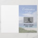Celebration of Life Memorial Event Program with fully customizable text. Soft ocean beach photo background on outside front, fold sheet to form brochure. Personalize all text for your event. Click on the photo template and upload your own photo, or just delete it if you don't want a photo. A celebration of life event is a wonderful way to share memories and pay tribute to a family member or friend, either in addition to, or instead of, a traditional funeral service. Printed both sides to fold into a booklet. BE SURE TO CUSTOMIZE BOTH SIDES, FRONT AND BACK OF SHEET.