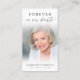 Simple memorial prayer card featuring a cherished photo of your loved one and the sentiment Forever in Our Hearts in elegant calligraphy script typography on the front and a suggested saying or your custom text on the back. These cards offer support and comfort for family and friends as keepsake memento in memory of their lost loved one.