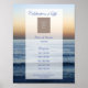 Celebration of Life memorial event program with ocean and your custom photo, and elegant typography. The words Celebration of Life are in a flowing script at the top, with a beautiful and peaceful ocean scene photo background. Change out the photo placeholder for a photo of the honoree. Personalize all text for your own event, deleting any field you don't need. List order of program and add a quote or other information.