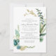 Elegant teal blue botanical foliage creates a modern watercolor frame. Gold leaves and branches give the wedding invitation an elegant luxe vibe. Open corners make given it an airy quality All of the text can be easily edited to create a personal remembrance.