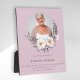 Personalized special memorial pink photo plaque featruring a circle photo template adorned with flowers , a beautiful keepsake to treasure forever.