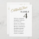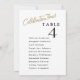 Celebration Time! in stylish script to assist your guests find their table with these elegant modern seating plan cards with guests names. Double sided cards so guests can look from both, front or back for their names. White background and black text, and table number with a drop shadow for effect. Several color options. Have all table numbers in same color or mix colors according to your event's color theme. The card prints on the front and back (double-sided). If you have any design questions, just send a chat and we'll be delighted to assist.