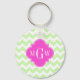 Celery Wht Chevron Hot Pink Quatrefoil 3 Monogram Keychain