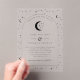 A celestial moon and star themed wedding invitation made with black ink on acrylic. Customise the colour of the star pattern, background, arch fill and moon element!