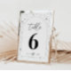 A celestial moon and star themed wedding table name which has the same design on the back, to help guests find their table. Customise the colour of the star pattern, background, arch fill and moon element! You will need to buy one for each table number at your wedding.