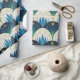 An abstract blue and gold pattern depicting the forest and the night sky in a pattern of Art Deco arches