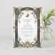 Celestial Art Nouveau Blue Gold Wedding Invitation