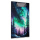 Introducing our stunning Northern Lights clipboard! This unique and beautiful design depicts the forest and the mountains at night, with a sky filled with the Northern Lights in shades of dark green, vivid turquoise blue, light purple, and dark purple. It's a breathtaking scene that captures the magic and wonder of the nighttime sky.