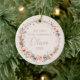 Mark your little one’s first holiday with this Celestial Baby First Christmas design. A delicate watercolor wreath of champagne gold stars, crescent moons, and subtle constellations is accented with blush florals and muted sage greenery, encircling your personalized text. Printed on smooth porcelain with a warm blush background, this dreamy keepsake adds a touch of magic to holiday décor and makes a perfect gift for new parents or grandparents.