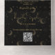 This all-in-one black and gold photo wedding invitation features elegant typography on a celestial moon and stars background. The invitation includes a perforated RSVP card with your wedding website QR code. Designed by Thisisnotme©
