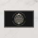 An elegant celestial style mystical business card featuring a pentacle, sun, moon, and florals, with your name and company or occupation encircling the celestial design. Pagan pentacle and phases of the moon.