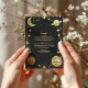 Celestial Black Gold Crescent Moon Wedding Enclosure Card