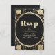 Celestial Black Gold Crescent Moon Wedding RSVP Card