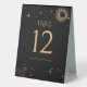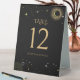 Celestial mystical personalized wedding table number featuring galaxy milky way midnight sky, star dust, crescent moon and other astrological symbols in black and golden colors. This table number is easily editable. If you need help with the customization of this product or you need more matching products for this collection kindly message me via Zazzle.